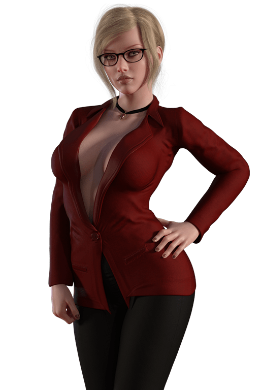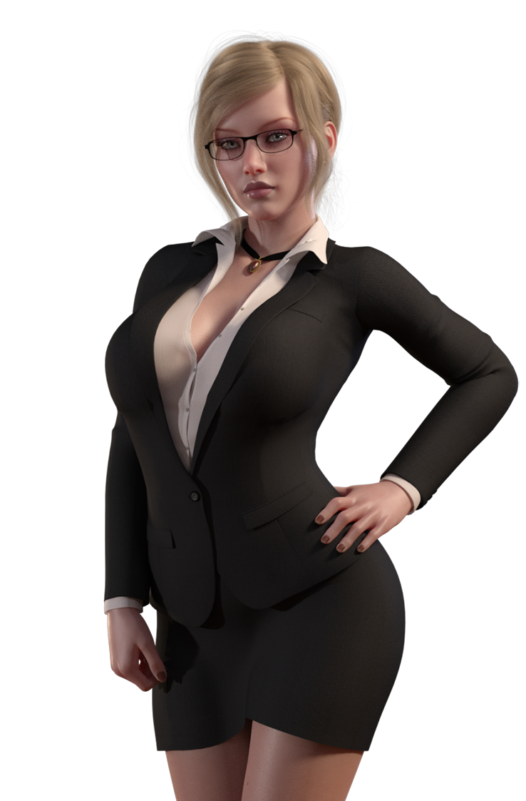 Outfit & Clothing Enhancements: More tailored business suit, improved fabric texture, detailed blouse with better shading, and sharper, more defined buttons, collar, and lapels.